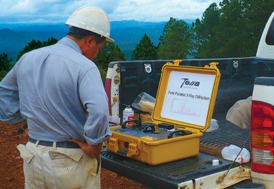 奥林巴斯的便携式X射线衍射分析仪,如:TERRA分析仪,几乎可以实时地为地质学家和冶金学家提供大多数矿物种类的定量性矿物学信息。勘探地质学家使用TERRA分析仪可以在野外勘探现场更有把握地做出决定。冶金学家可以使用便携式X射线衍射分析仪获得所需的信息,以开发更有效的配矿策略,并优化选矿和精炼技术,从而可以获得更高的锂元素回收率。