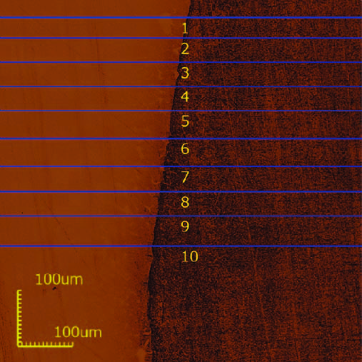 The use of a confocal laser microscope such as the Olympus LEXT OLS4000 leads to higher resolution as compared to a contact stylus as the microscope’s laser beam has a resolution of 0.4 μm. This is compatible with standard demineralization and does not cause damage on the sample surface because there are no contact forces between them (Figure 1).