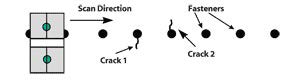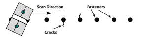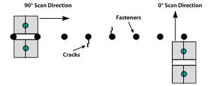 Typical Center Scan with an Adjustable Probe ![]() | Scan Directions to Help Ensure All Cracks Are Evaluated ![]() |