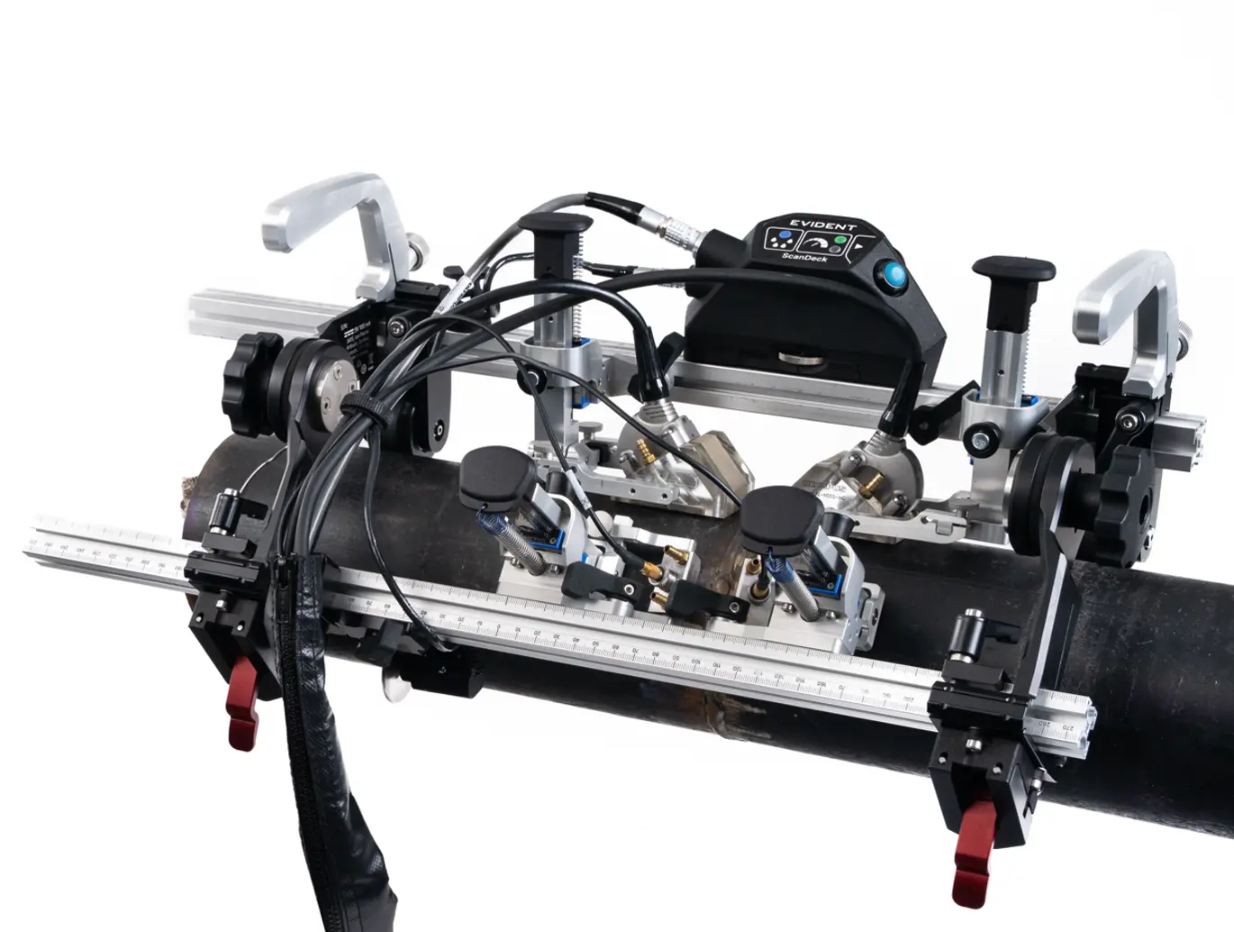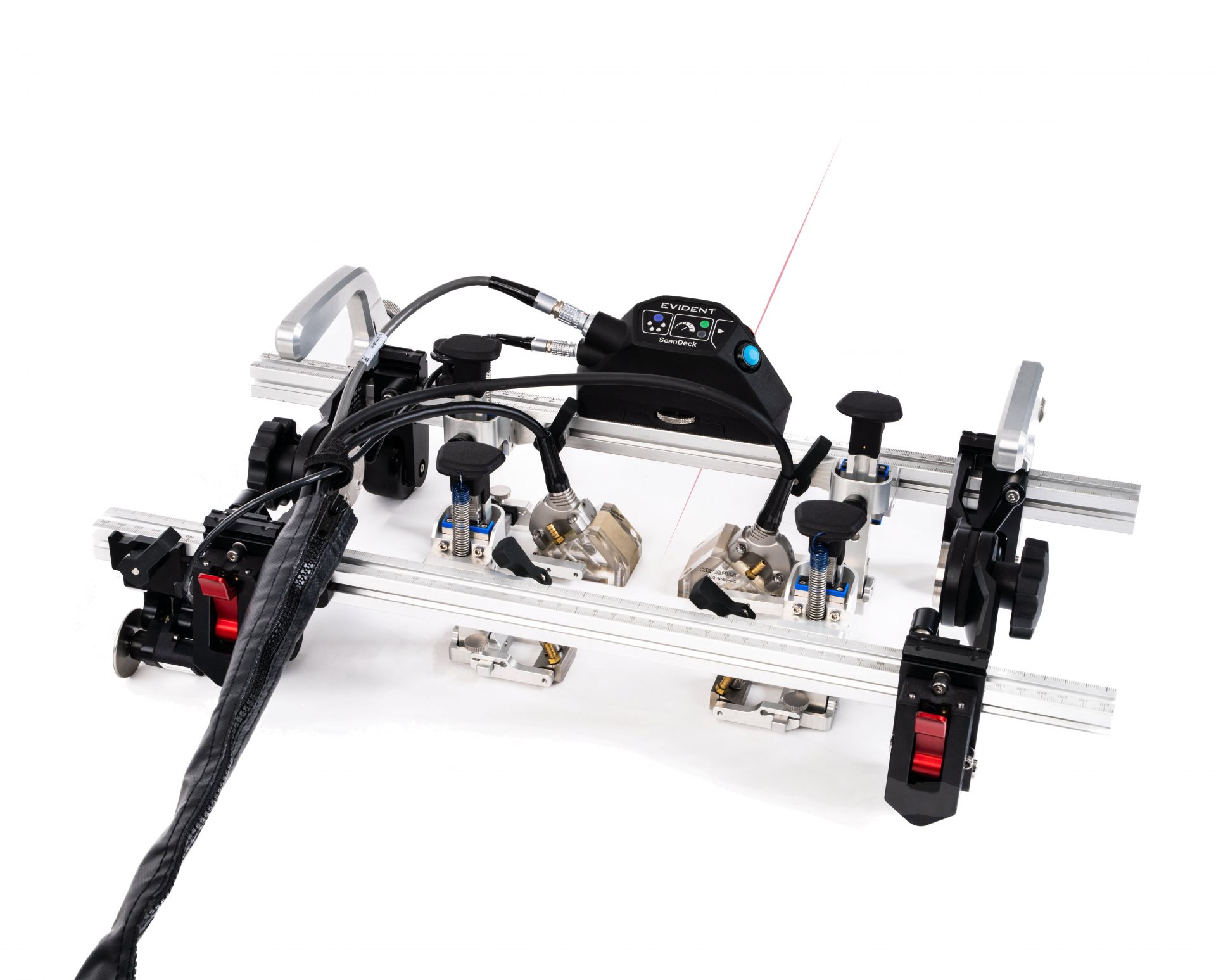 Designed for precision and consistency, the spring-loaded, pivoting probe holders help maintain optimal coupling while minimizing mechanical play. This ensures strong signal integrity and reduces the likelihood of missed flaws.