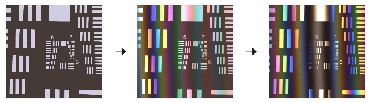 Comparison images of a Fresnel lens sample taken with a conventional WLI 50X objective (NA 0.55) and Evident’s 50X WLI objective (NA 0.8).