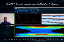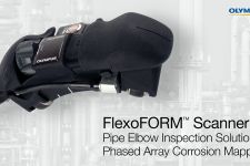 The scanner uses a water wedge that minimizes water consumption and provides easy air bubble management while enabling the scanner to conform to the elbow’s convex and concave shapes, couple to surfaces with moderate roughness, and synchronize data to the front wall.