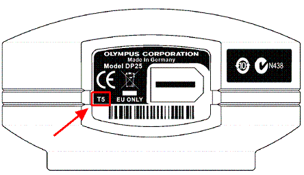 Windows Vista上で動作可能なDP25カメラヘッドは以下のようにコネクタの横に「T5」と表示されているものです。DP2-BSW Ver1.4以降、及びDP25TWAIN Ver1.4以降とともにWindows Vistaと組み合わせてご使用になれます。
