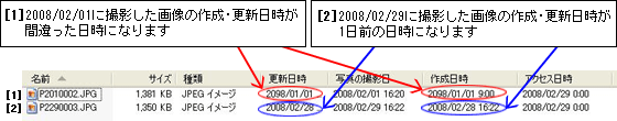 - うるう年の2月に撮影を行なった画像ファイル並びに保存フォルダについて、日時情報が正しく表示されない場合があります。(図2.参照)