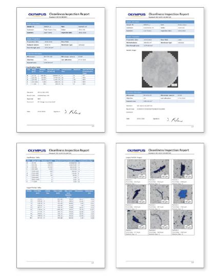 报告的呈现格式可以根据要求获得数据的公司的测量需求和技术规格进行调整。可以在报告中显示最大颗粒的分类表格和图像。上述信息都可以在检查软件中提供的报告模板中定义。