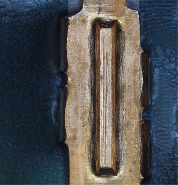 在标准光学显微镜下,由于阴影作用(图1A),很难看到压接端子中的凹痕。这是由于光束打在压接端子的斜面上造成的。