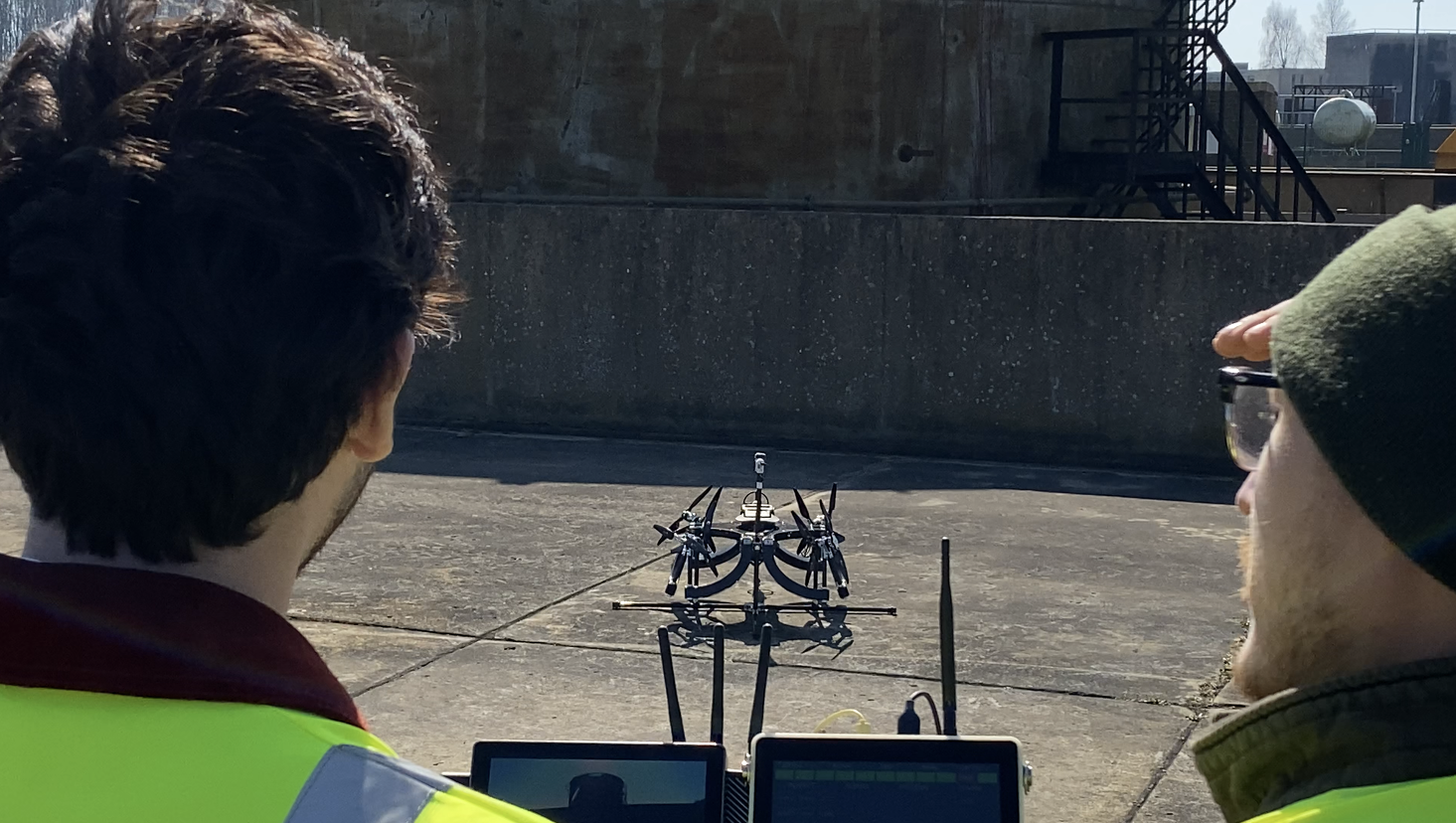 当Skygauge无人机在危险场所进行检测时,工人们待在地面上。