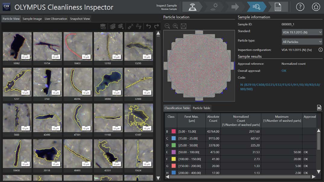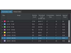 所有颗粒和分类表、整体清洁度代码、颗粒位置和使用的标准均显示在一个视图中。