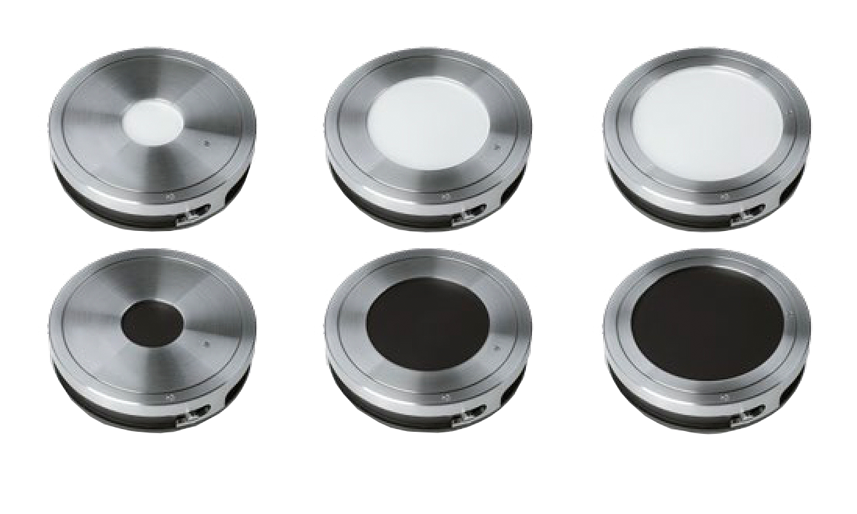 CIX100系统支持各种具有圆形或矩形检测区域的样品托架。包括用于装放直径为25毫米、47毫米和55毫米的滤膜、具有白底或黑底的托架;用于胶带提取法采样的托架;用于冶金应用的平面托架;以及用于颗粒捕集器的托架。