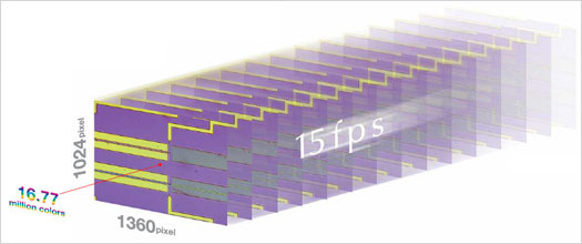 以1360×1024像素的非压缩高清晰画质,每秒15幅的实时动态功能显示1677万像素的、逼真的全彩色影像。
