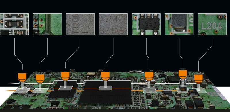 自动目标辨别图像分割可使人工智能只需少量训练,即可识别和计数样品中的不同目标类型。 | ![]() Through holes in printed circuit board (left). Live detection of filled and empty holes (right). |