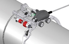 扫查器可进行双轴编码,可检测铁磁性或非铁磁性表面。链条有助于确保扫查器沿着直线方向移动,而不会出现偏向问题。在管道周围区域难以接触时,这个扫查器非常有用,因为可以拉动链条使扫查器围绕管道转动。