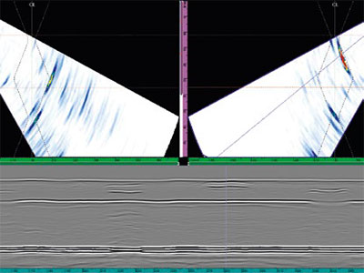 对容器外壳上的焊缝进行半自动相控阵和衍射时差(TOFD)检测 | |
